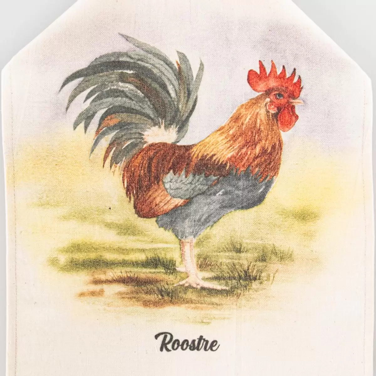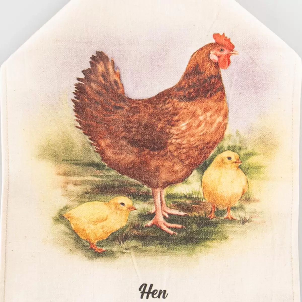 این مدل از دستمال و حوله آشپزخانه از ۳ تکه تشکیل شده است؛ هر ۳ تکه به صورت دستی دوردوزی شده اند تا دوام و ماندگاری محصول افزایش یابد. همچنین جای آویز ظریف و زیبایی در بالای آن تعبیه شده است تا به کارگیری آن در آشپزخانه راحت تر باشد. بر روی هر کدام از ۳ تکه حوله آشپزخانه طرح حیوان، یکی از طرح های نقاشی شده توسط اساتید نقاشی پیاده سازی و اجرا شده است؛ طرح خروس، طرح مرغ و طرح اردک. این طرح ها با استفاده از تکنیک های خاصی به صورت حرفه ای از روی طرح اصلی به روی حوله ها کپی شده اند.