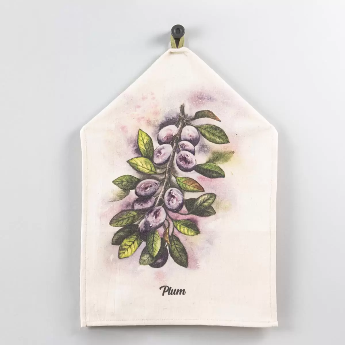 حوله آشپزخانه طرح میوه از ۳ قطعه حوله به ابعاد ۳۰ سانتی متر در ۴۵ سانتی متر تشکیل شده است که بر روی هر کدام از حوله ها، طرح یکی از میوه ها ثبت شده است؛ انگور، لیمو و آلوی سیاه! هر کدام از این طرح ها برگرفته از یک نقاشی اصیل با آبرنگ می باشند که طی یک فرآیند فنی، تبدیل به طرح قابل چاپ روی پارچه پنبه ای شده اند.