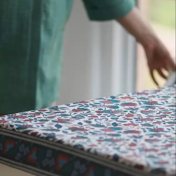 - رومیزی پرنیان را از سمت پشت آن اتو نمایید (سمتی که طرح ندارد).